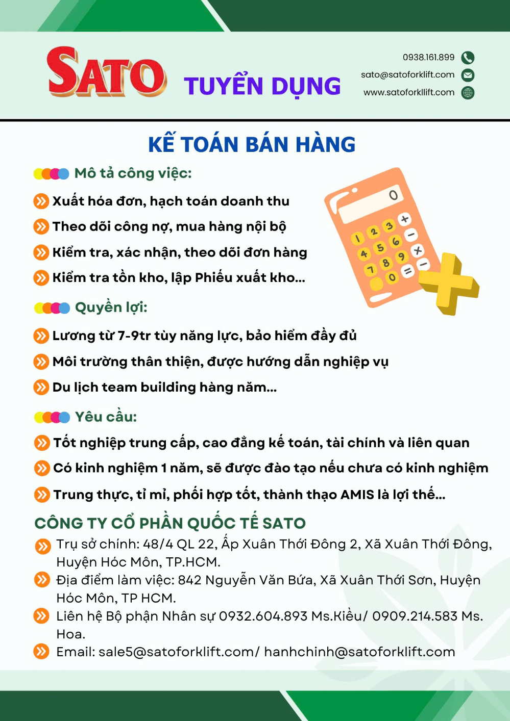 Công ty Cổ phần Quốc tế Sato tuyển dụng Kế toán bán hàng